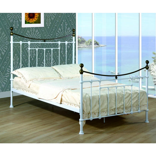 View full details• Material : Metal• Finish : White and Antique Brass• Suitable for UK standard mattress• Assembly required• We do not deliver to Northern Ireland a...