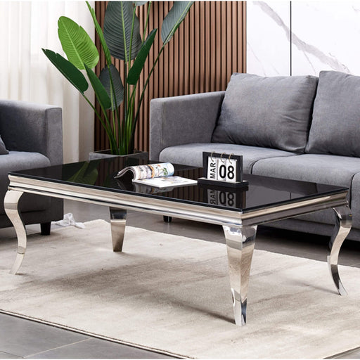 View full detailsFEATURES :• Material : Glass, Stainless Steel• Finish : Black,Silver• Coffee Table Black Glass• Stainless Steel Base• Fantastic-Value, Only at Bed ...