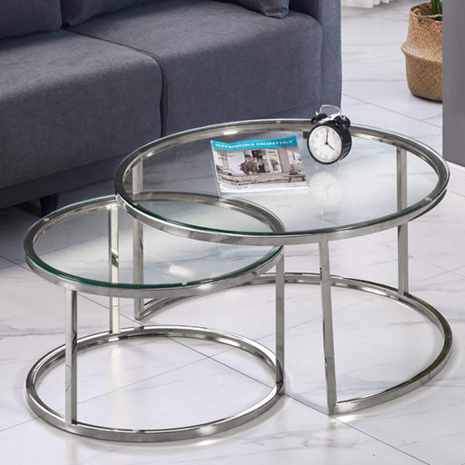 View full detailsFEATURES :• Material : Glass, Stainless Steel• Finish : Clear, Silver• Coffee Table Set• Clear Glass Top• Stainless Steel Base Silver• Fantastic-Va...